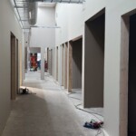 Nu är det stora glastaket på plats och flera av de stora fönsterpartierna runt byggnaden monterade – något som kommer ge generöst ljusinsläpp i de nya lokalerna.