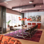 Genom att använda Alectas BÅT-modell (Bevara – Återbruka – Tillägga) och ett formspråk hämtat från 60- och 70-talet har arkitekterna Semrén & Månsson skapat en arbetsmiljö som kombinerar stark design med minimal klimatpåverkan. Resultatet? Ett cirkulärt kontor med själ, karaktär och en klimatpåverkan på lite över 30 kg CO₂/m² – en fjärdedel av ett traditionellt projekt.