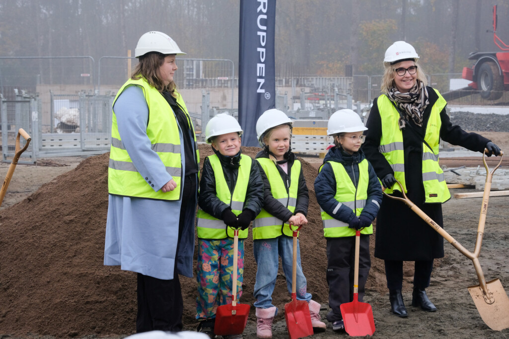Den stora samlingen barnen som deltog kom från olika förskolor i närområdet och fick se platsen där deras framtida skola nu börjar ta form.
