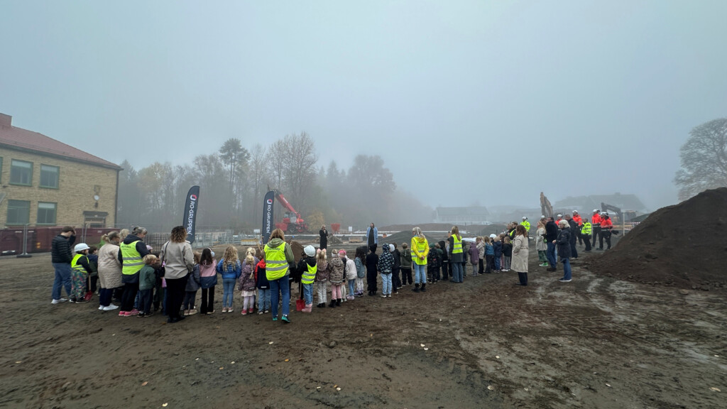 Dimman låg tät i förmiddags men det påverkade inte barnen som deltog i det ceremoniella första spadtaget på Tummarpskolan 👷🏼‍♀️ På plats fanns även medarbetare från förskolorna, skolans rektor, representanter från Borås Stad och vi på RO-Gruppen.