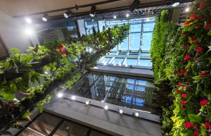 Byggnaden är uppförd i huvudsak av trä, det minst koldioxidkrävande byggmaterialet, och är unik avseende arkitektur, konstruktion och miljö. Miljön i huset gör sig påmind både i konstruktionsmaterialet och i inslag av grönskande arkitketur ”biophilic design”. Det är ett koncept som används inom byggbranschen för att öka naturupplevelsen genom användning av växter och därigenom skapa positiva hälso- och miljöaspekter.